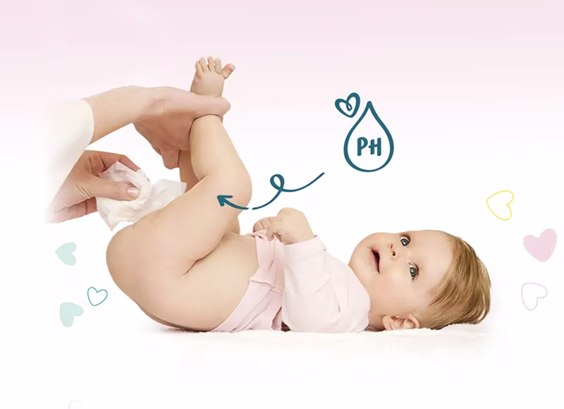 Våre babyservietter er egnet for ekstra sensitiv nyfødt hud.